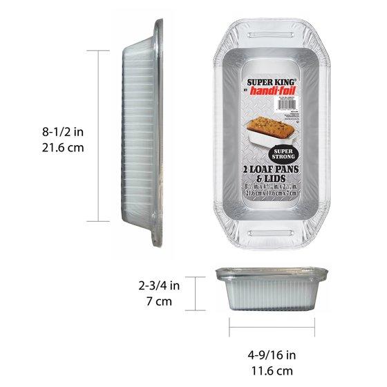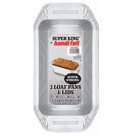 - Handi-Foil Super King Aluminum Foil Loaf Pan with built in Handles and Lid, includes 2 pans and 2 Snap-on lids.