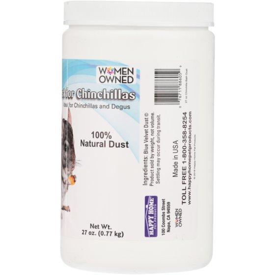 Happy Home Pet Products Bathing Dust for Chinchillas 27 oz. Jar You've never felt anything softer than your adorable, furry little pet chinchilla. But that doesn't mean the little guy doesn't start to smell after a while. Not to worry. Bathe him with Happy Home Bathing Dust for Chinchillas. When you want to take great care of your pets, trust the good women at Happy Home a Women Owned Business.