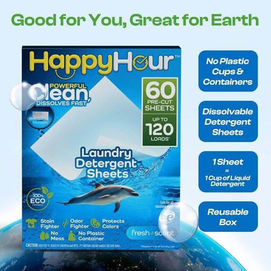 Happy Hour Laundry Detergent Sheets Eco Friendly Color Safe 60 Sheets 120 Loads Fresh Scent