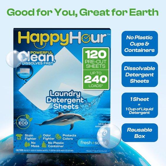Happy Hour Laundry Detergent Sheets Eco Friendly Color Safe 120 Laundry Sheets 240 Loads Fresh Scent