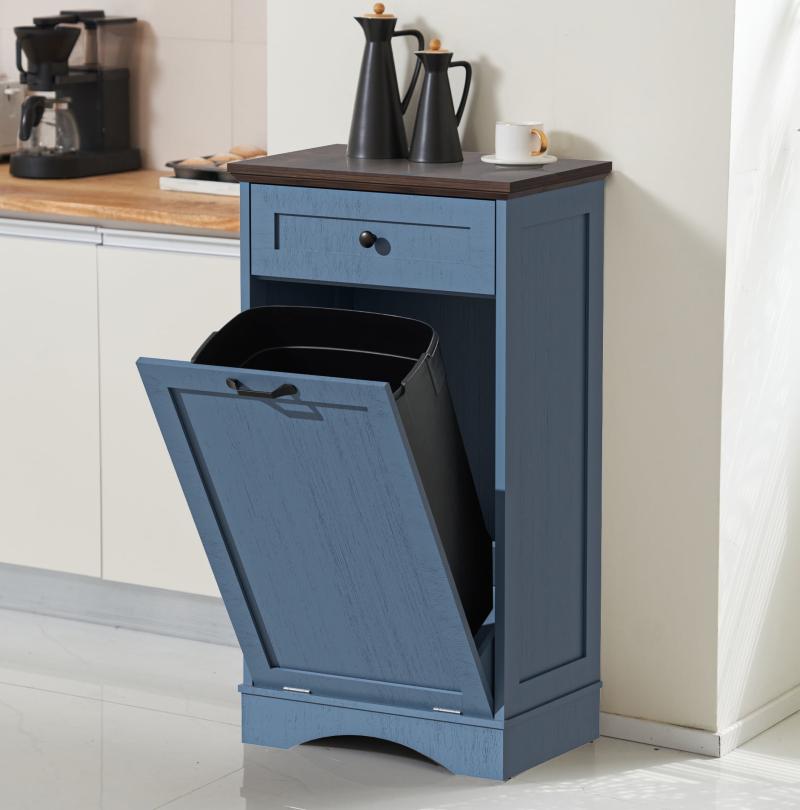 HARIPUL 13 Gallon Trash Cabinet for Kitchen, Laundry Hamper Pet Proof Hidden Trash Can Cabinet,Blue