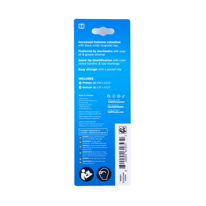 HART 2pc 2-1/2" Length Pocket Acetate Screwdriver Set