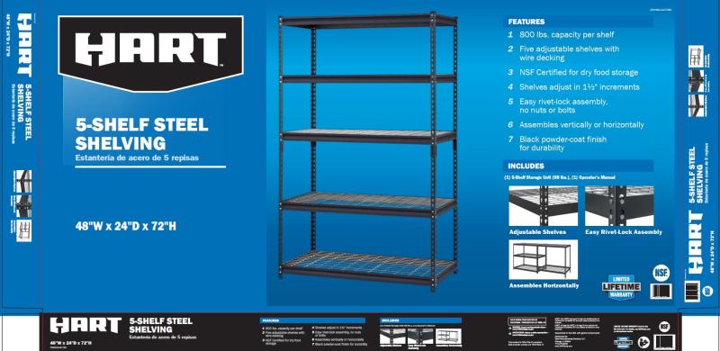 - Capacity Per Shelf: 800 lbs.