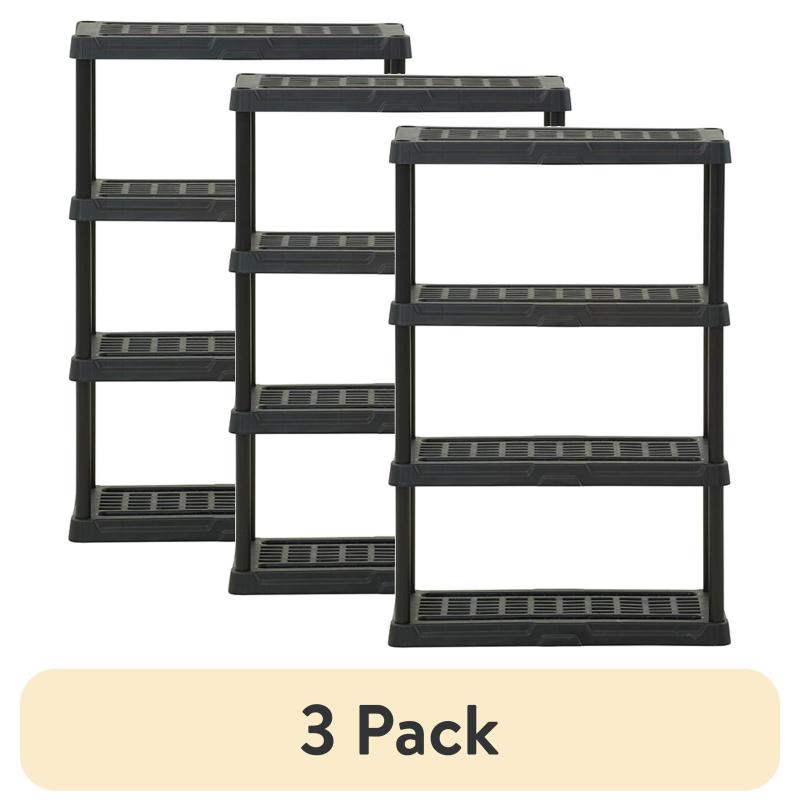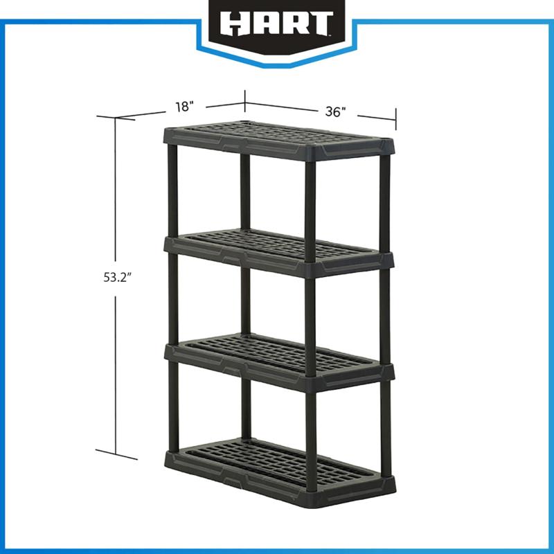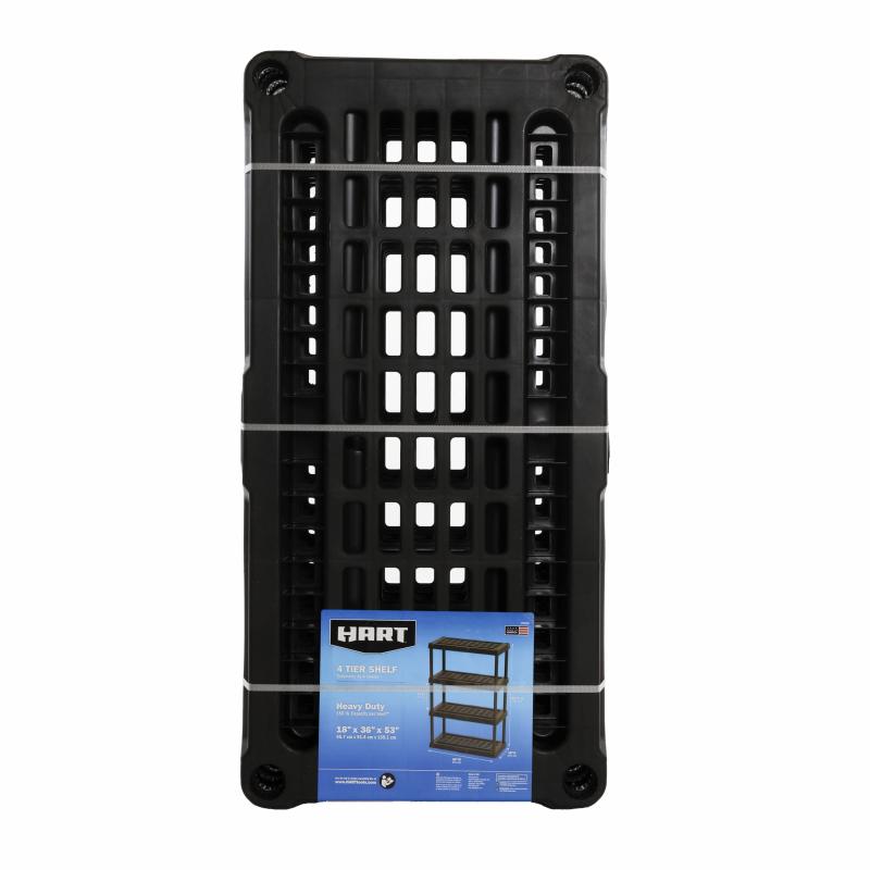 (3 pack) Hart Black Plastic 4-Tier Shelf 36" W x 18" D x 53" H, Up to 600 lb Total Capacity