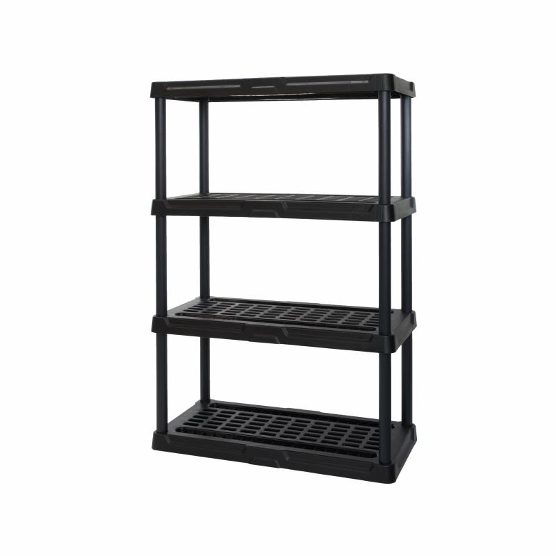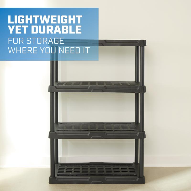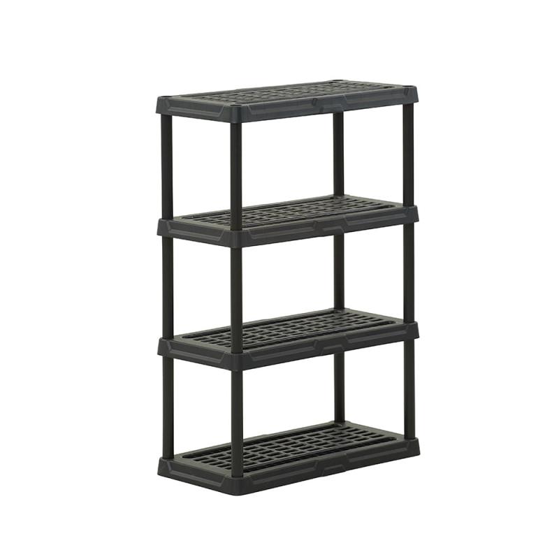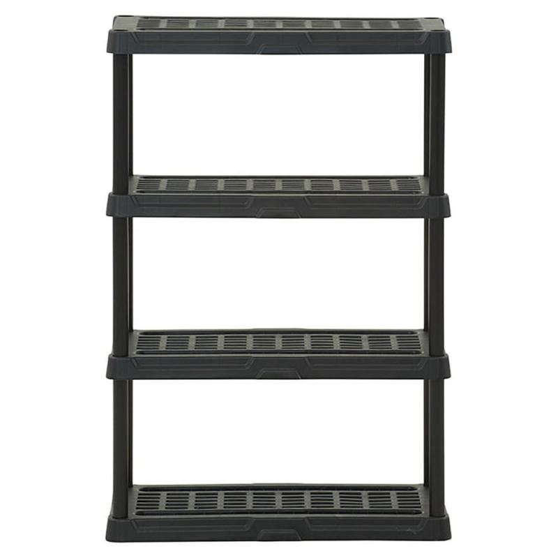 - Durable, ventilated 4-tier storage shelving unit