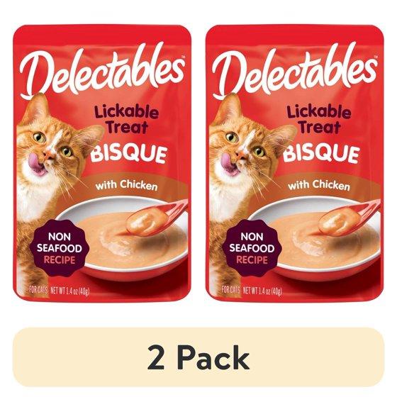 (2 pack) Hartz Delectables Bisque Non-Seafood Lickable Wet Cat Treats, Chicken - 1.4oz, One Pouch