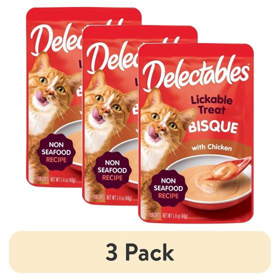 (3 pack) Hartz Delectables Bisque Non-Seafood Lickable Wet Cat Treats, Chicken - 1.4oz, One Pouch