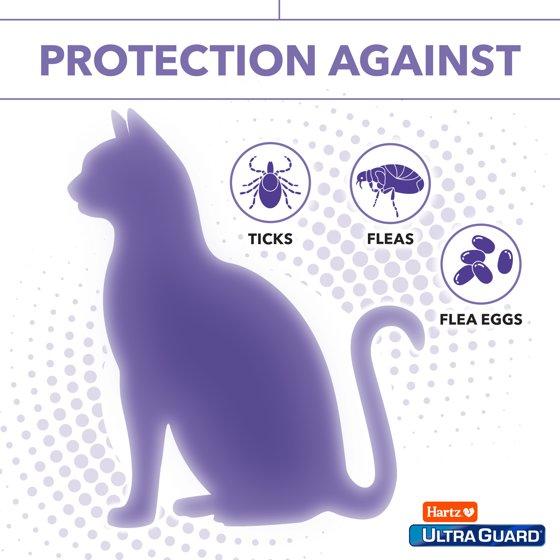 - Kills and repels fleas, ticks, flea eggs and flea larvae, plus prevents flea eggs from hatching for a 7 month duration. Can be worn simultaneously with your cat's regular collar