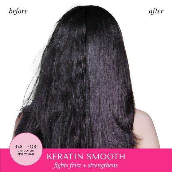- Keratin repairs, strengthens and smoothes the hair shaft, minimizing frizz and adding brilliant shine