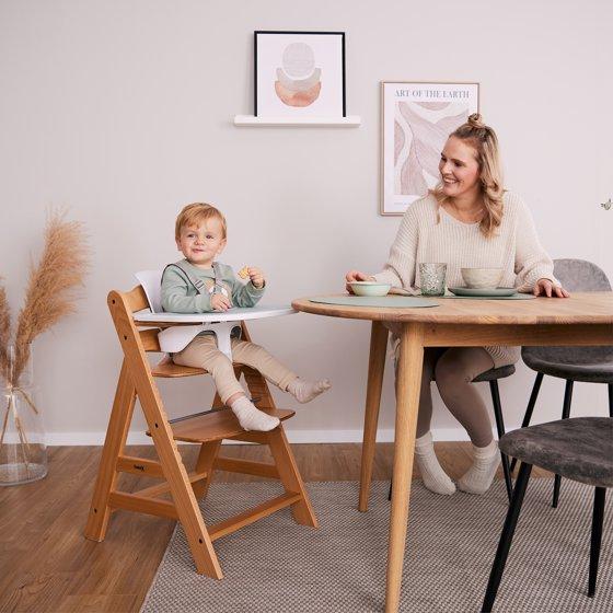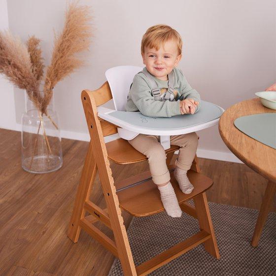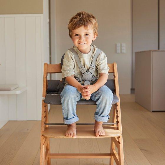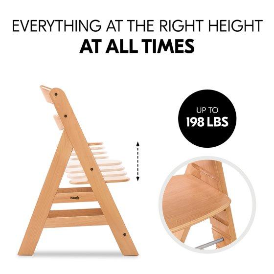 The Hauck Alpha+ Adjustable Wooden High Chair is designed to grow with your child, making it an ideal choice for families seeking a versatile and long-lasting seating solution. Suitable for babies aged 6 months and up, this high chair accommodates infants, toddlers, children, and even young adults weighing up to 198 pounds. Its adaptability ensures that it will be a staple in your home for many years. Crafted from FSC-certified European Beechwood, the Alpha+ high chair boasts eco-friendly durability, combining solid construction with a commitment to sustainable and environmentally responsible sourcing. Made from european beechwood and non-toxic grey finish adds a touch of elegance to any dining area, making mealtime a stylish and enjoyable experience for your little ones. The complete set includes everything you need for safe and convenient use: a sturdy chair, wooden bumper bar, click tray, seat reducer, and a 5-point safety harness. These components work together to ensure maximum safety and comfort for your child, whether they are just starting to sit up or are transitioning to more independent dining. One of the standout features of the Alpha+ high chair is its ergonomic design. The adjustable seat and footplate can be easily modified to provide a relaxed, back-friendly sitting position, supporting your child's growth and development. This flexibility allows the high chair to adapt to your child's changing needs, ensuring a comfortable and supportive seating option at every stage. Measuring 18.90 inches in length, 22.6 inches in width, and 32.7 inches in height, the Alpha+ high chair is designed to fit seamlessly into your dining space. Its attractive design and high-quality materials make it a stylish addition to any home, allowing your children to join in mealtime in style. With the Hauck Alpha+ Adjustable Wooden High Chair, you can enjoy the perfect blend of functionality, comfort, and eco-friendly durability.