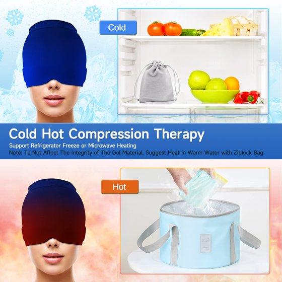 - Supports Hot Cold Therapy: Thick ice gel pack for the head works by coldness and hotness to relieve pain stress tension. When you need a hot compress, please heat the headache relief hat with warm water for not to destroy the gel. and when you need an ice compress, you can keep your headache ice cap in the fridge.