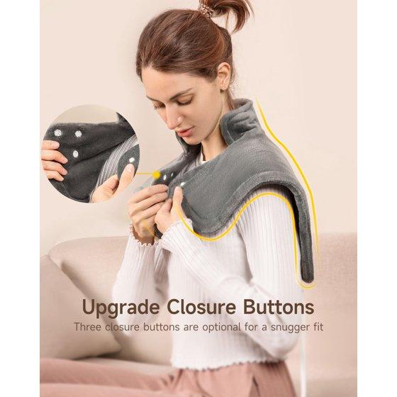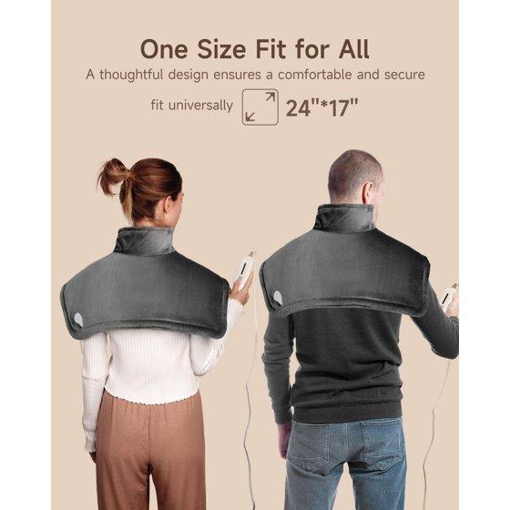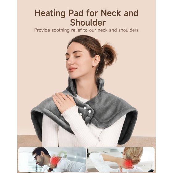 Heating Pad for Neck and Shoulders Pain Relief Cramps ALLJOY, 25"x18" Skin-Friendly Heated Neck Wrap 3 Fast Heat Setting with Auto Shut Off for Home and Office, Machine Washable, Gray