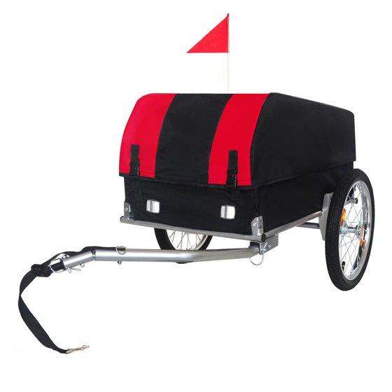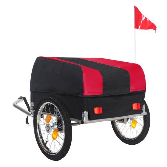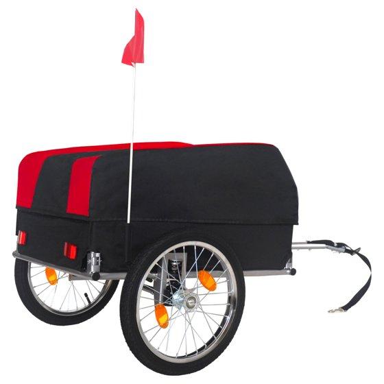 Heavy-Duty Bike Trailer with Removable Waterproof Cover – 88 lbs Capacity, 16" All- Wheels & Foldable Design for Camping, Groceries red black