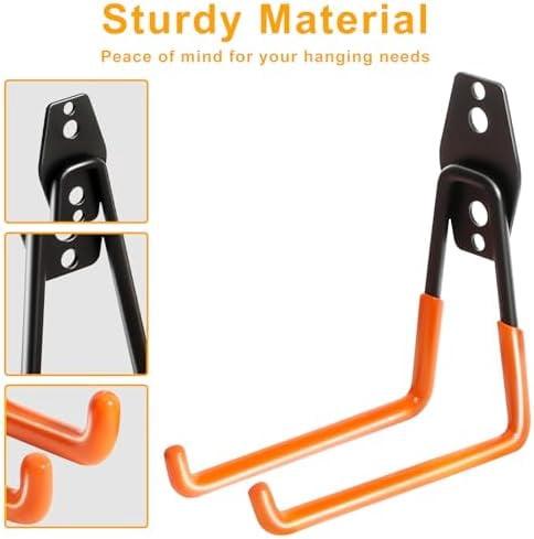 - POWERFUL WEIGHT CAPACITY - Our Heavy Duty garage storage hooks are an essential item for anyone looking to maximize their storage space. With a weight capacity that's second to none, you'll be able to hang everything from bikes and ladders to shovels and strollers without worrying about them falling or bending the hooks. These garage hooks heavy duty are perfect for creating a garage storage system and are great garage hangers for wall mount hooks