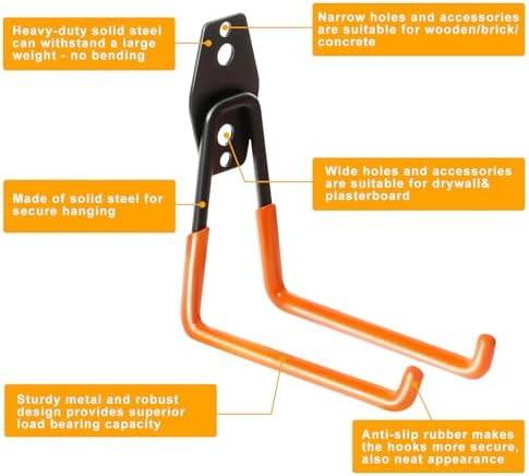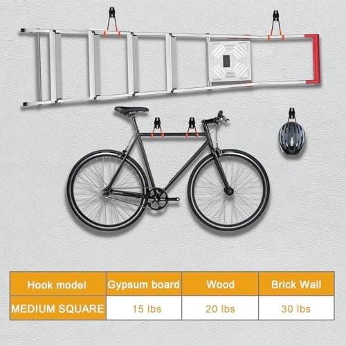 - WIDE RANGE OF APPLICATIONS - One of the best things about our heavy duty wall hooks is their versatility. Whether you need to hang a bike, ladder, or gardening tool, these garage wall hooks have got you covered. They're perfect for anyone who wants to keep their space tidy and clutter-free. These heavy duty wall hooks are also great ladder hooks for those who need to store their ladders.