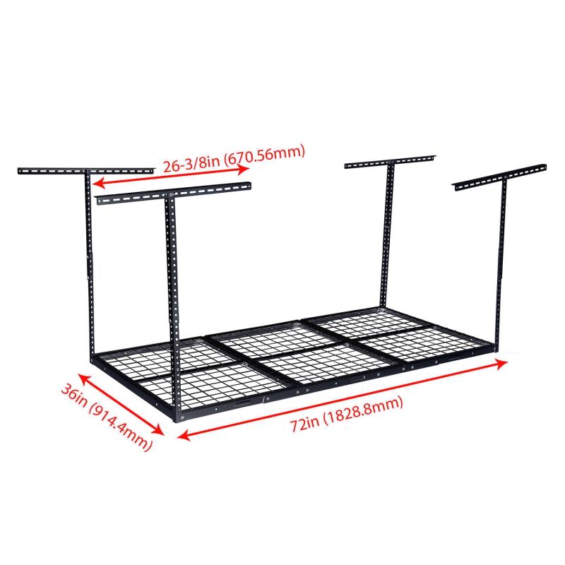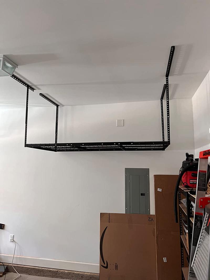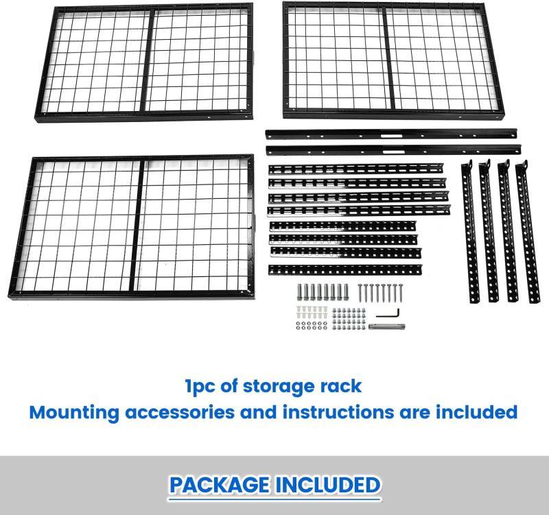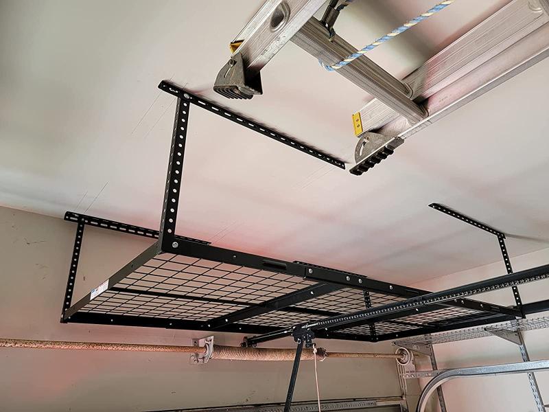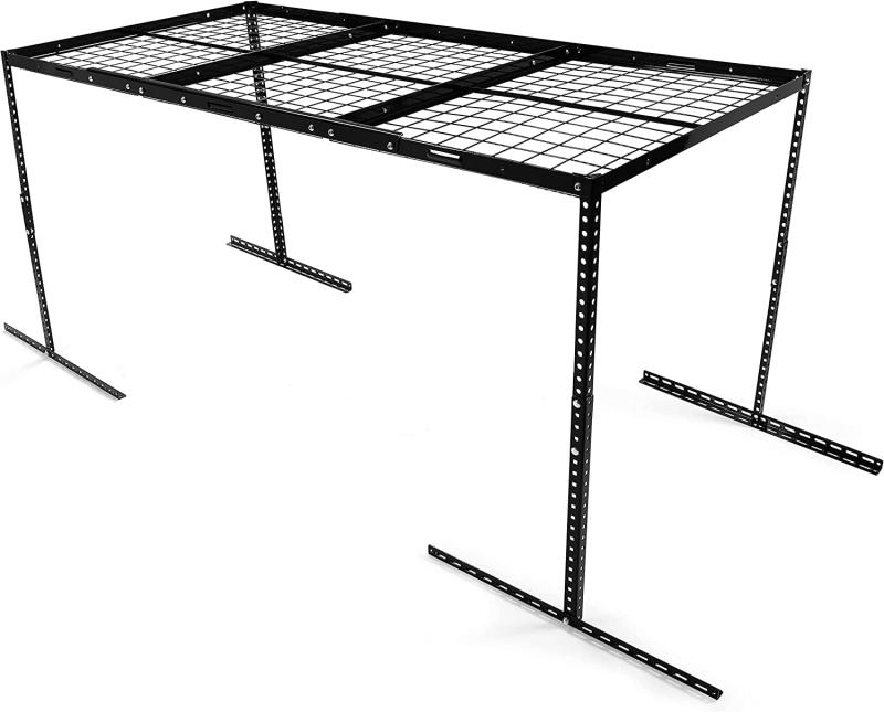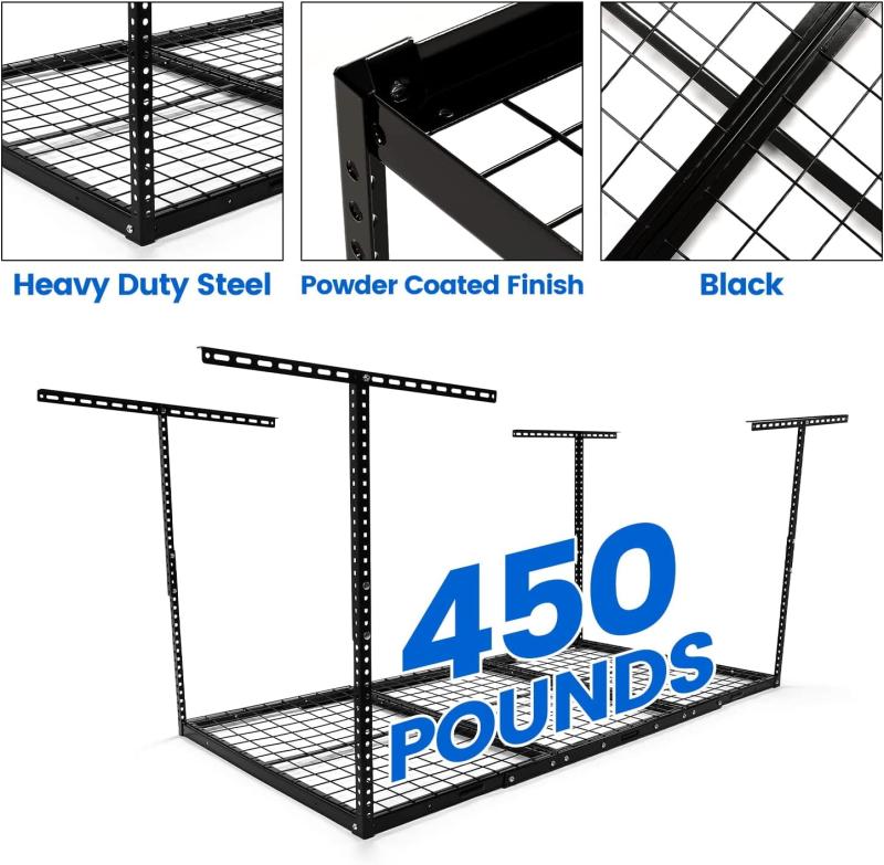 It is designed to help make use of wasted space in the garage. The grid design is more stable and sturdy compared to other products. Heavy duty steel construction can hold up to 450lbs