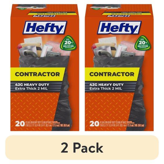 (2 pack) Hefty Heavy Duty Contractor Large Trash Bags, Made with 20% Post-Consumer Recycled Materials, 42 Gallon, 20 Count