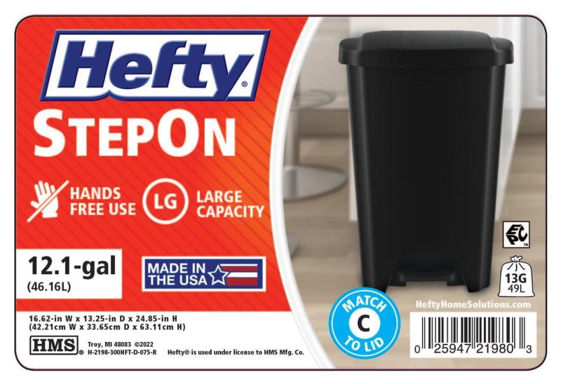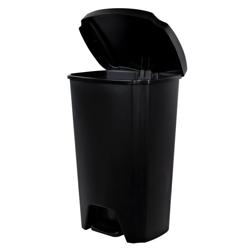- Hefty Kitchen Trash Can, 12.1 Gallon Plastic Step Garbage Bin with Foot Pedal Lid, Black