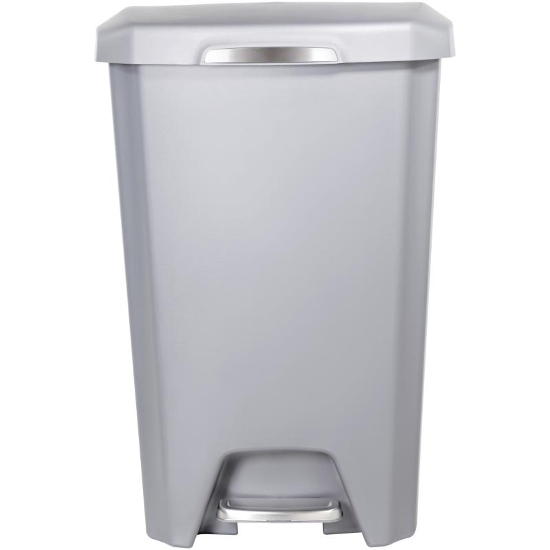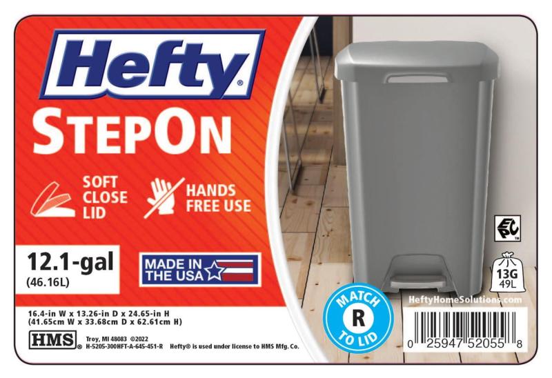 - Hefty Kitchen Trash Can, 12.1 Gallon Plastic Step Garbage Bin with Soft Close Foot Pedal Lid, Gray