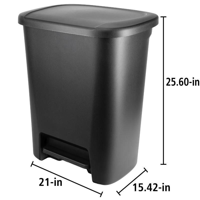 - Hefty Kitchen Trash Can, 20.1 Gallon Plastic Step Garbage Bin with Foot Pedal Lid, Black