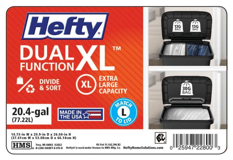- Hefty Kitchen Trash Can, 20.4 Gallon Plastic Recycling Two Compartment Garbage Bin with Lift Top Lid, Black
