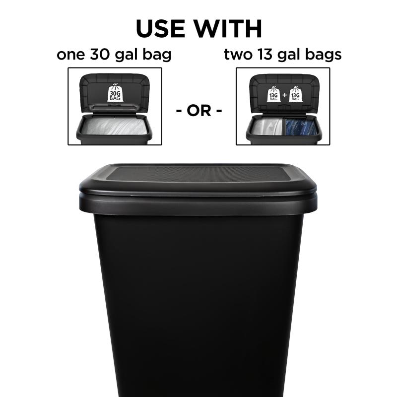 - Dual Capacity Design: Versatile 2-in-1 waste bin that fits a single 30-gallon outdoor trash bag for maximum volume or easily converts to a double 13-gallon kitchen trash can for recycling separation