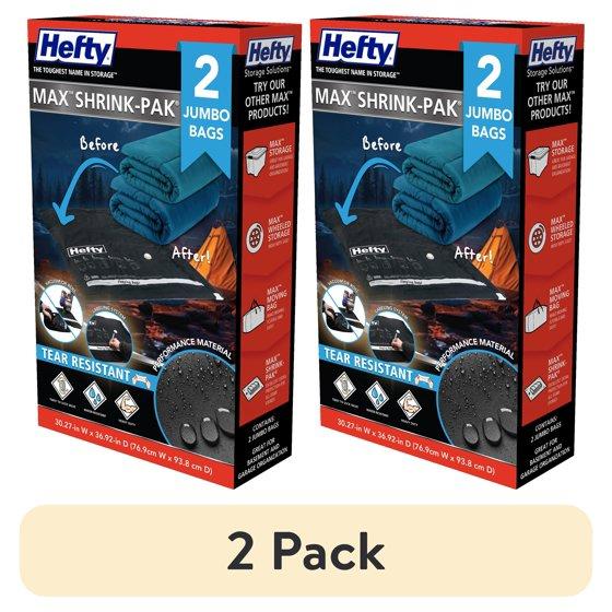 (2 pack) Hefty Max Shrink-Pak 2 Jumbo Vacuum Compression Bags, Closet Garage Organizers, Black, Adults / Tweens