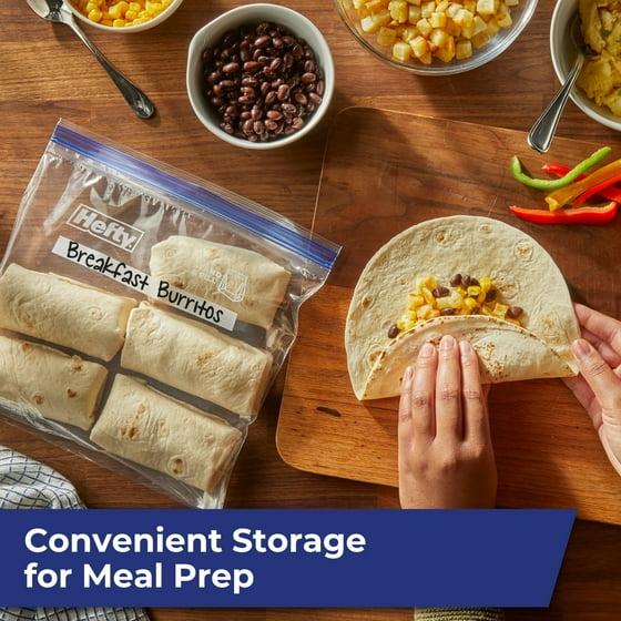 - Gallon Size Freezer Bags—This pack includes 40 gallon size, BPA-free, microwave-safe Hefty Press to Close Freezer Bags