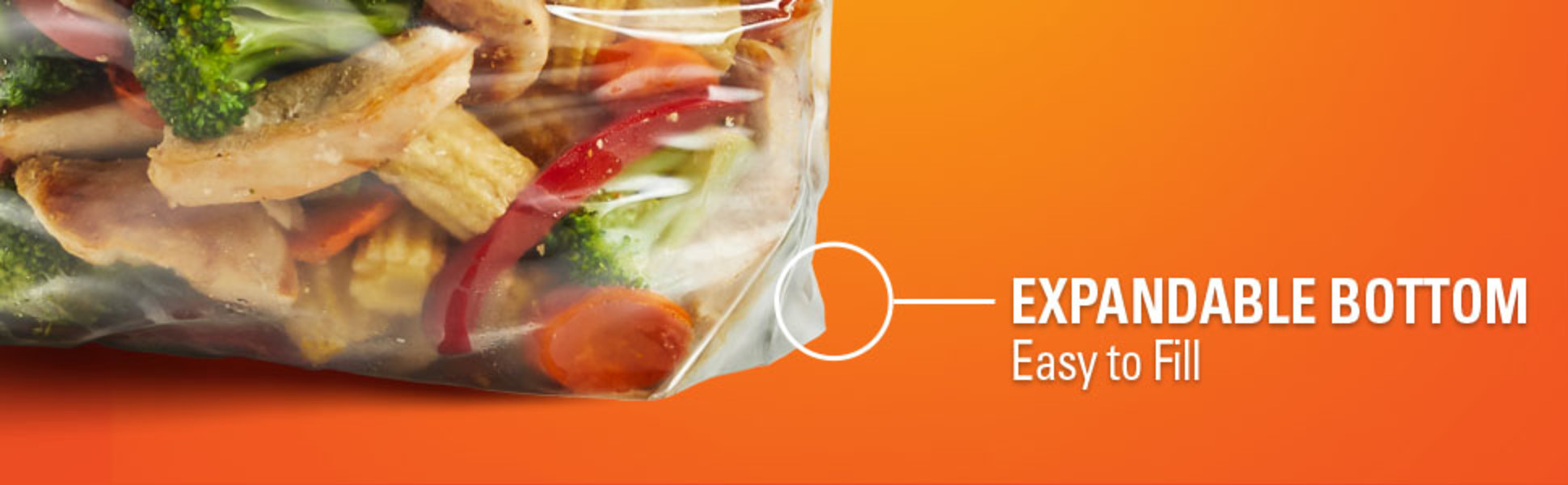 - Expandable Stand-&-Fill Bottom—Stand these plastic freezer bags up on your counter, table, or freezer shelf to simplify filling and storing