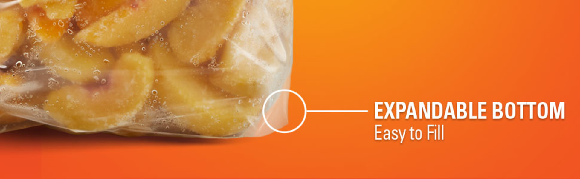 - Expandable Stand-&-Fill Bottom—Stand these plastic freezer bags up on your counter, table, or freezer shelf to simplify filling and storing