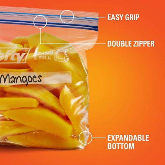• Expandable Stand-&-Fill Bottom—Stand these plastic freezer bags up on your counter, table, or freezer shelf to simplify filling and storing