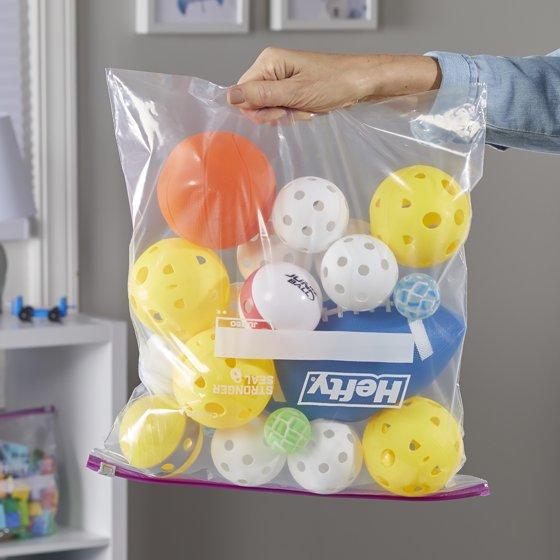 - Jumbo Size Food Storage Bags—This pack includes ten 2.5 gallon Hefty Slider Storage Bags