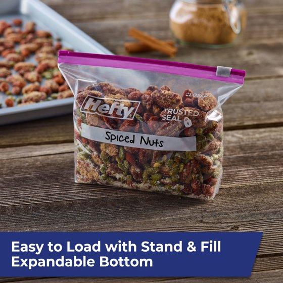- Expandable Stand-&-Fill Bottom—Hefty slider bags are expandable; stand them up on your counter, table or refrigerator shelf to simplify filling & storing