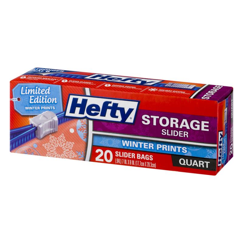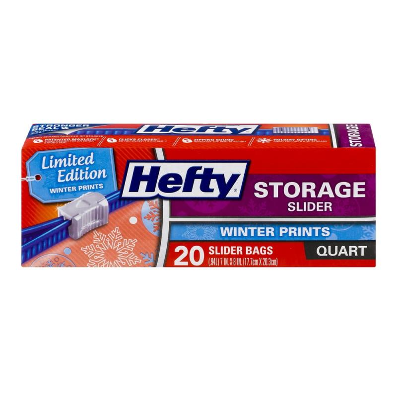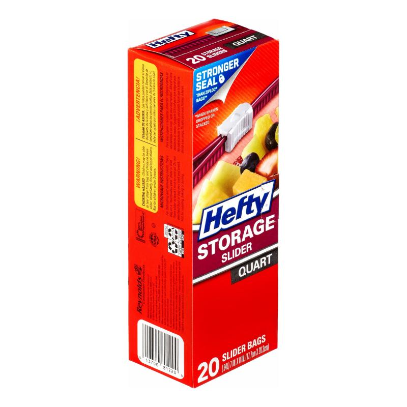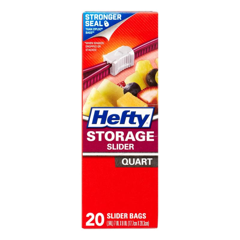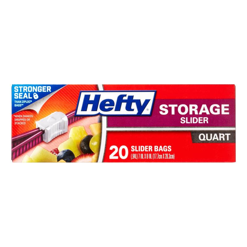 - QUART SIZE FOOD STORAGE BAGS—This pack includes one box of 20 quart size Hefty Slider Storage Bags