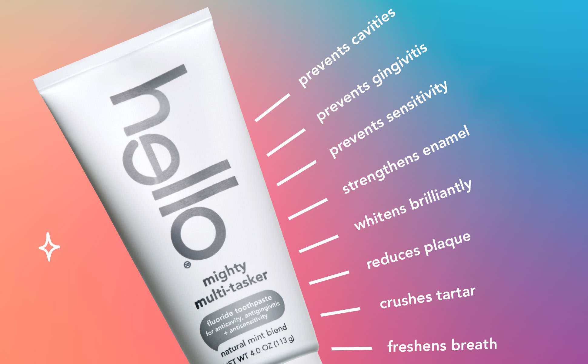 - Includes one (1) 4.0 oz tube of hello 8 in 1 Mighty Multi-Tasker Fluoride Toothpaste, Natural Mint Blend