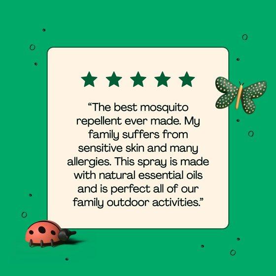 Make mosquitoes mind their manners with natural essential oils. Made with citronella, cedarwood, peppermint, and lemongrass oils, our repellent is perfect for everything from playtime at the park to outdoor adventures – anywhere mosquitoes may lurk. Plus, it’s a convenient continuous spray that uses a chemical-free aerosol technology that only needs air as a propellent!