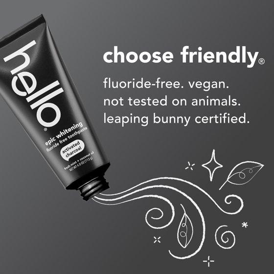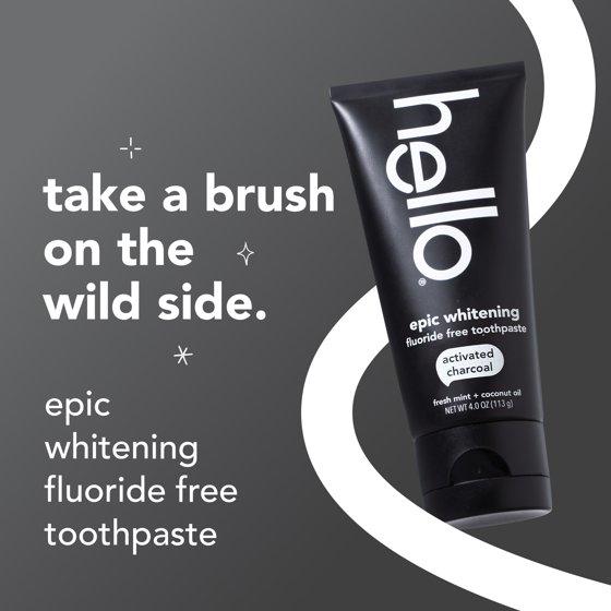- Includes one (1) 4.0 oz tube of hello Epic Whitening Activated Charcoal Toothpaste, Fluoride Free Teeth Whitening Toothpaste
