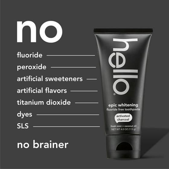 - Includes one (1) 4.0 oz tube of hello Epic Whitening Activated Charcoal Toothpaste, Fluoride Free Teeth Whitening Toothpaste