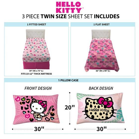Hello Kitty Kids 3 Piece Pink Sheet Set, Twin