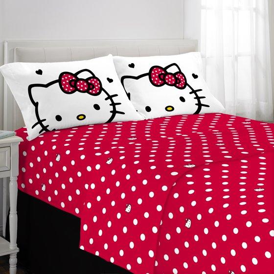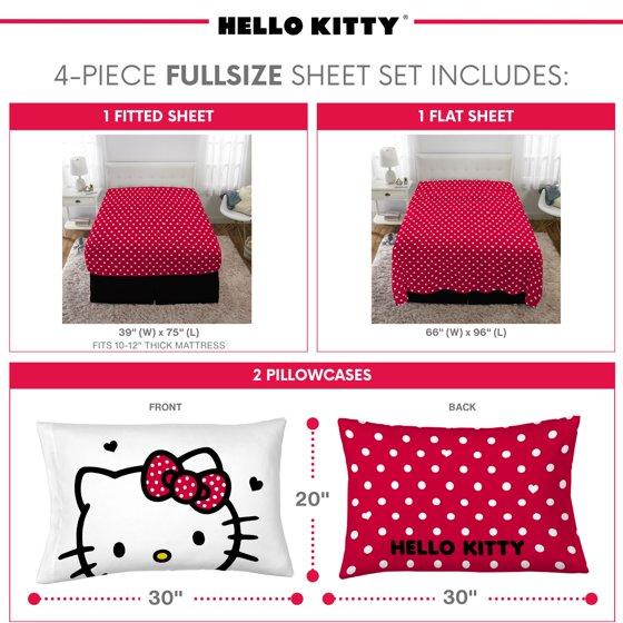 Hello Kitty Kids 4 Piece Red White Polka Dots Sheet Set, Full