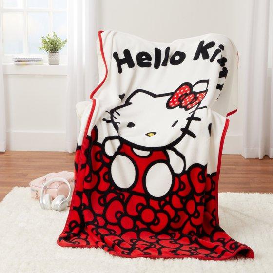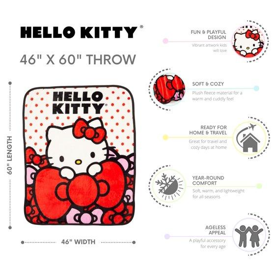 Hello Kitty Kids Red White Print Fleece Throw Blanket, 46 x 60
