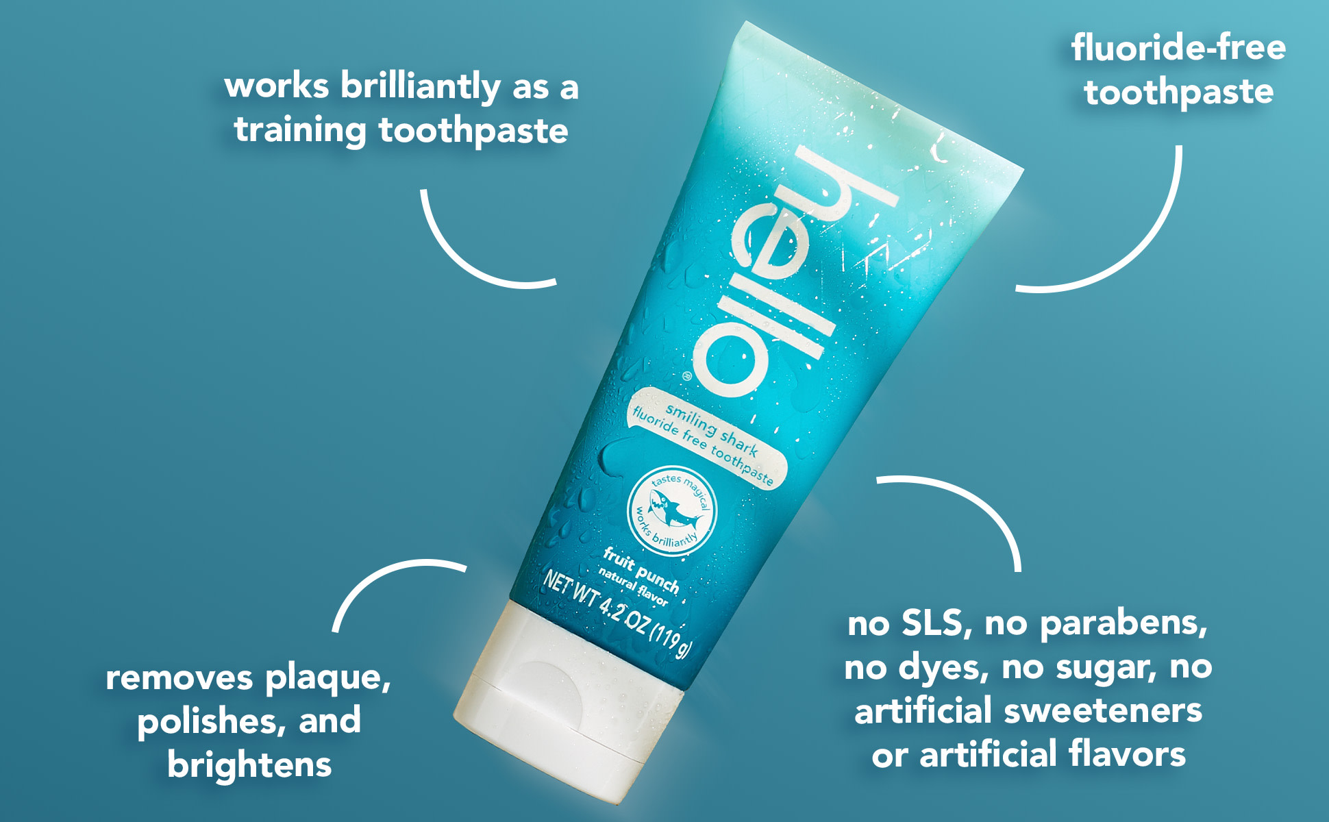 - FINS UP: Savor the jawsome fruit punch flavor and make a big splash when it’s time to brush with hello Smiling Shark Fluoride Free Kids Toothpaste