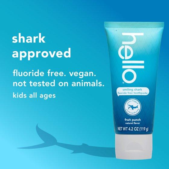 - FINS UP: Savor the jawsome fruit punch flavor and make a big splash when it’s time to brush with hello Smiling Shark Fluoride Free Kids Toothpaste