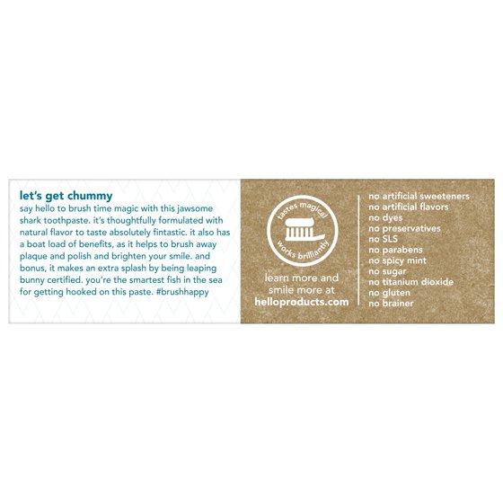 - WHAT I’M GETTING: Includes one (1) 4.2 oz tube of hello Smiling Shark Fluoride Free Kids Toothpaste, Natural Fruit Punch flavored