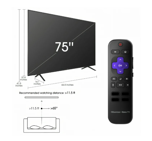 Hisense 75" Class 4K UHD LED LCD Roku Smart TV HDR R6 Series 75R6E4