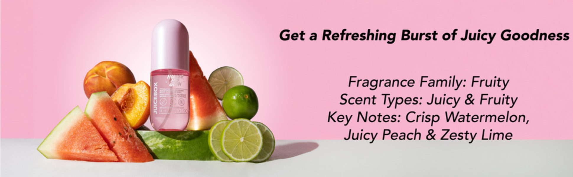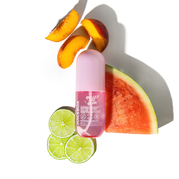 - Hair & Body Mist - Get a refreshing burst of juicy goodness with just a light spritz of our Holler And Glow Mood Boosting Juice Box Body & Hair Mist. Formulated with notes of watermelon, peach, and lime