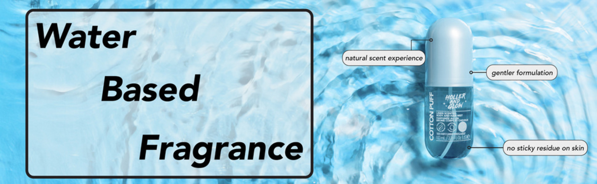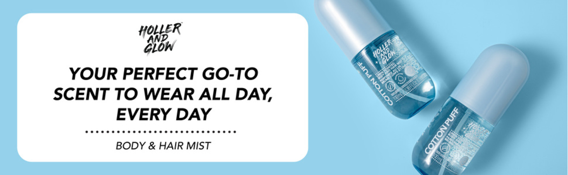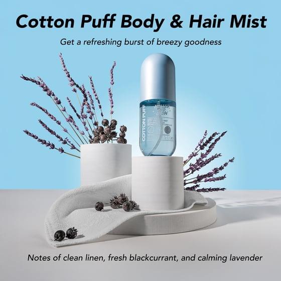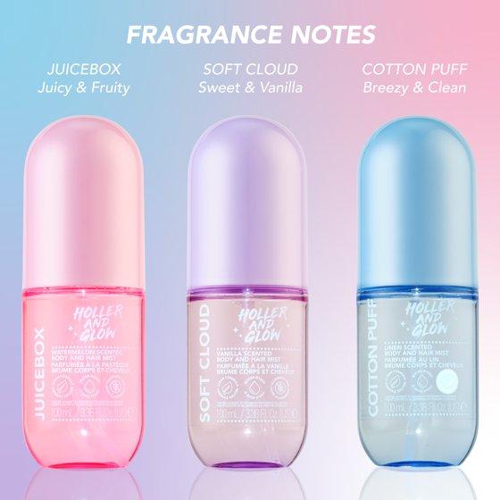 - Hair & Body Mist - Get a refreshing burst of breezy goodness with just a light spritz of our Holler And Glow Mood Boosting Cotton Puff Body & Hair Mist. Formulated with notes of linen, black currant, and lavender