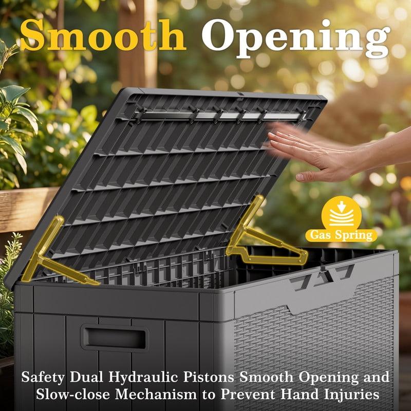 - Durable Design: Crafted from high-quality materials, our deck box is built to withstand the elements. Its sturdy construction ensures long-lasting durability, making it suitable for both indoor and outdoor use.