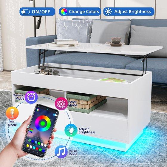 - Smart LED Features: Control your coffee table's LED lights with a remote or app, customizing colors, brightness, and effects. Enjoy 29 dynamic lighting modes, music sync, microphone settings, and a timer function for the perfect ambiance. Cool LED lights enhance any decor, creating a vibrant atmosphere for festive celebrations as Christmas or cozy winter nights.