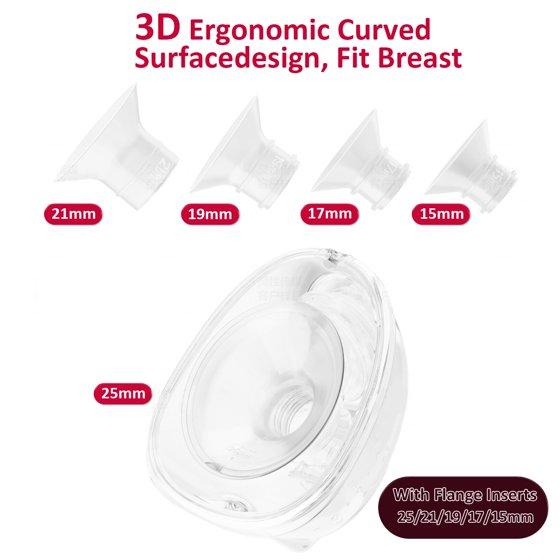 Painless and Fits Well: Comes with 25mm breast shield and 15/17/19/21mm flange inserts, suitable for different breast or nipple sizes.